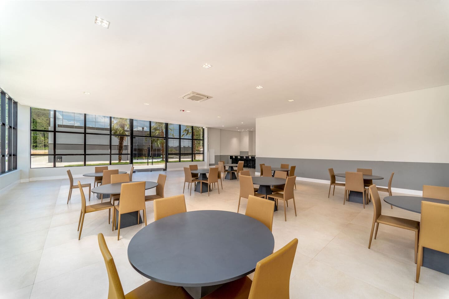 O salão de festas e o centro de convivência foram pensados para eventos e confraternizações, enquanto o restaurante próprio, administrado pela Prato Mil, garante uma experiência gastronômica prática e de qualidade sem sair do empreendimento. Tudo isso envolto por áreas verdes cuidadosamente planejadas, calçadas com paisagismo e zonas de descanso estrategicamente posicionadas.