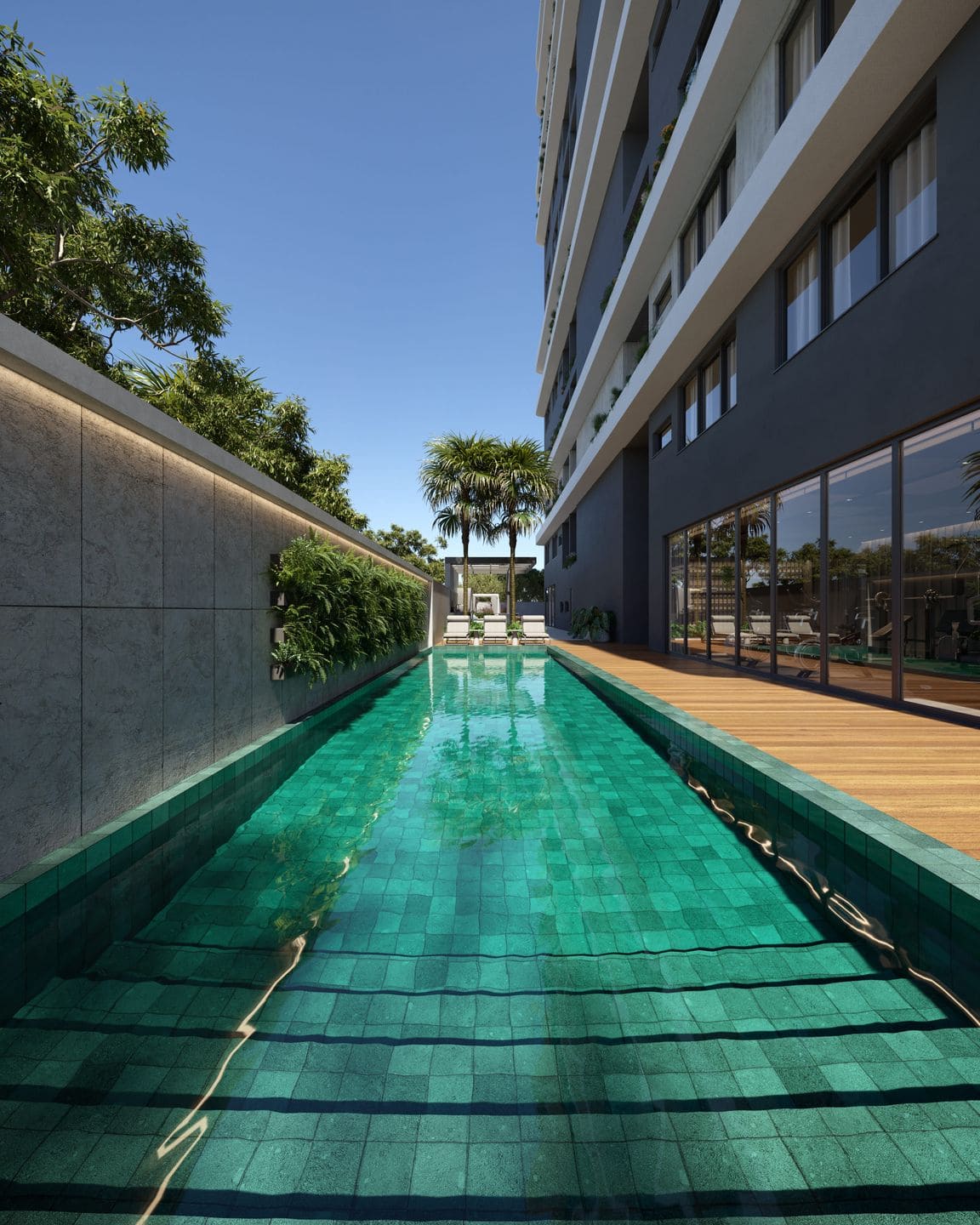 A área de lazer é um verdadeiro refúgio de bem-estar e sofisticação, pensada para atender aos mais exigentes perfis. Com piscina adulto e infantil, proporciona momentos refrescantes em família, enquanto o espaço kids interno e externo, sala de jogos e brinquedoteca garantem a diversão das crianças com segurança e conforto. Os ambientes sociais se destacam com o pub, salão de festas mobiliado e decorado, além de uma charmosa churrasqueira externa ideal para confraternizações.