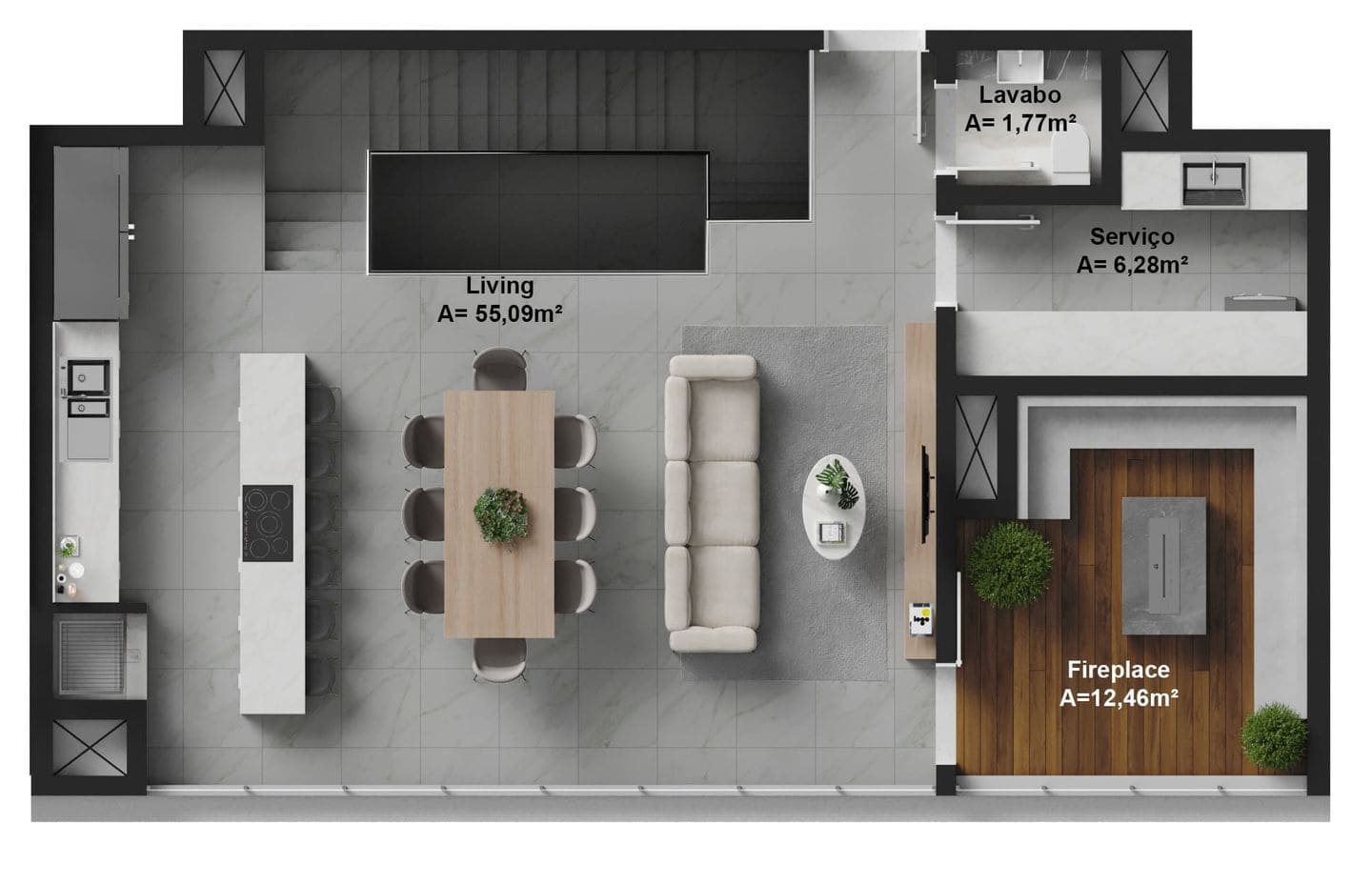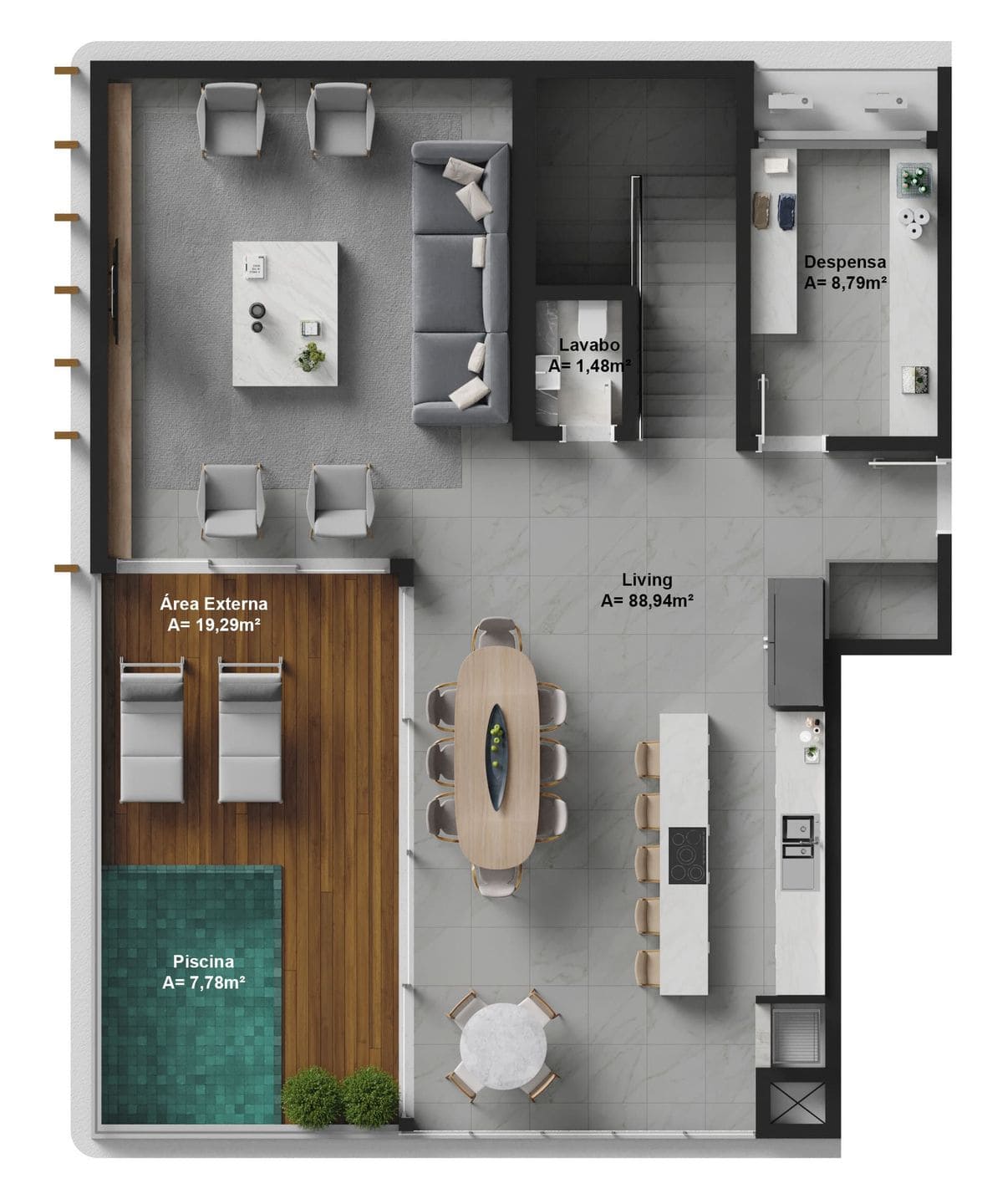 Para os que priorizam saúde e equilíbrio, a academia oferece estrutura completa para treinos diários. O pet place acolhe os animais de estimação com liberdade, enquanto o fireplace convida ao relaxamento em dias mais amenos. Cada espaço foi projetado para proporcionar experiências únicas, unindo lazer, funcionalidade e alto padrão em um único endereço. Aqui, cada detalhe foi pensado para transformar o cotidiano em momentos de prazer e qualidade de vida.
