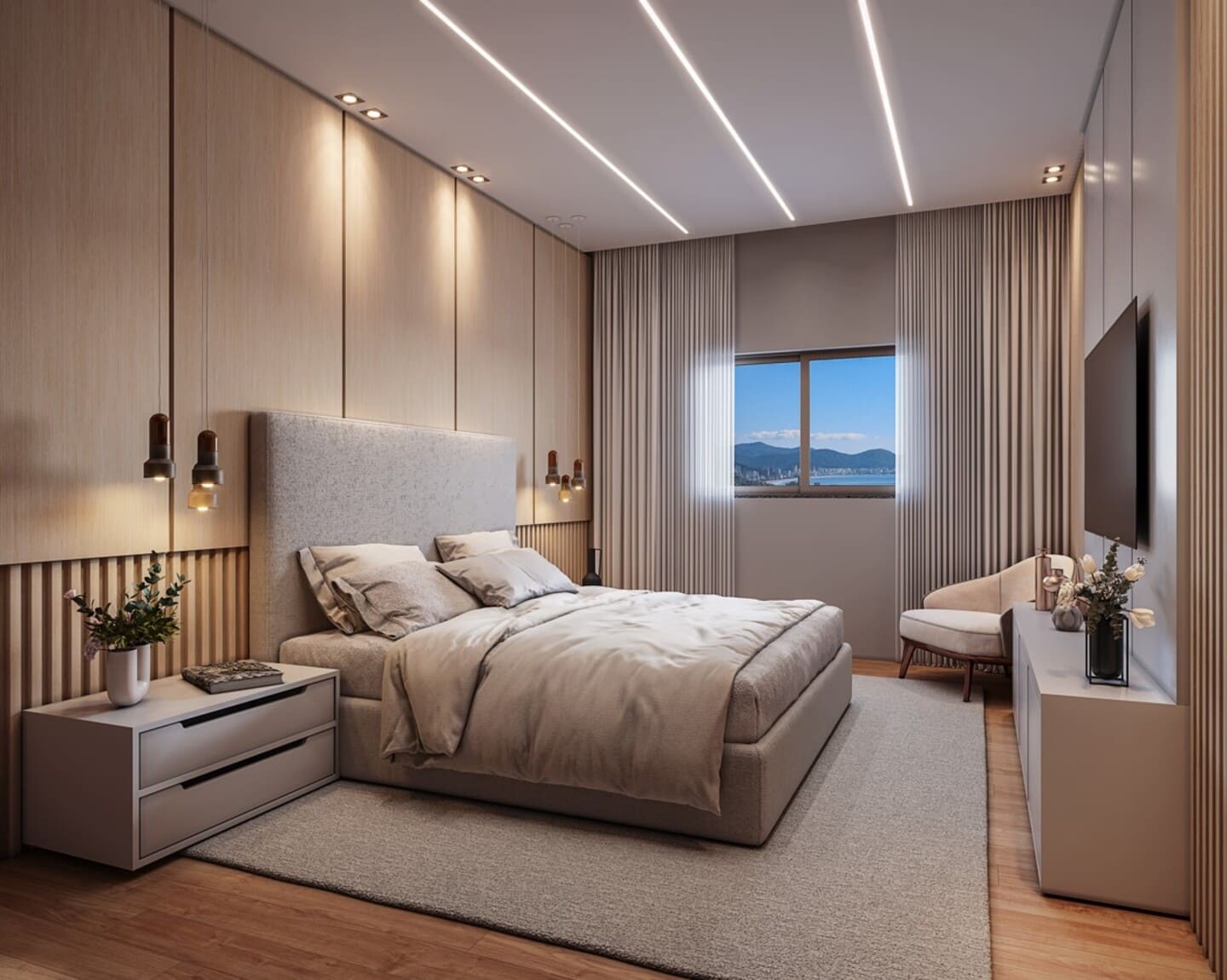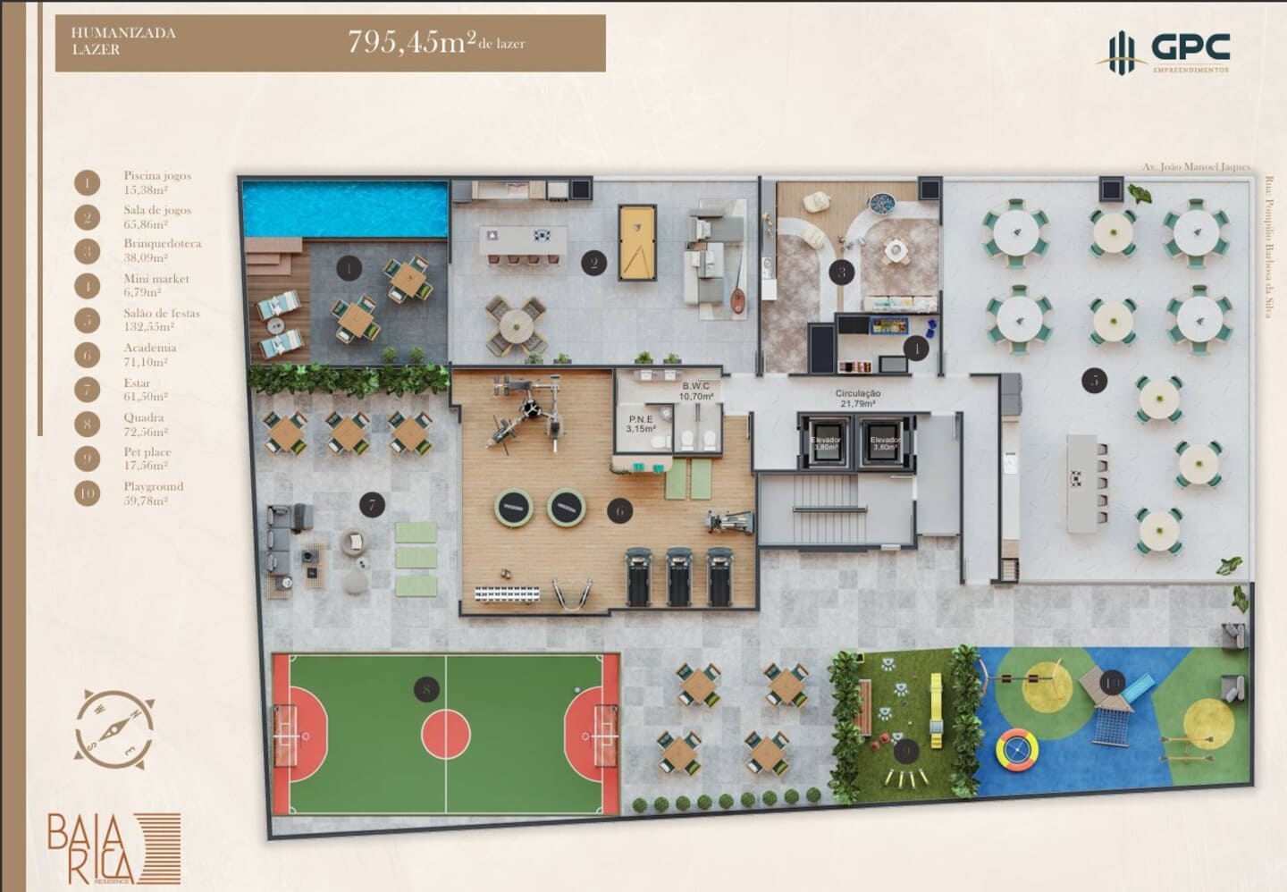 O projeto exibe ambientes cuidadosamente planejados, como a brinquedoteca lúdica, playground vibrante, academia ampla e equipada, além de uma sala de jogos acolhedora para todas as idades. O salão de festas, com decoração contemporânea, e o lounge gourmet traduzem o equilíbrio entre sofisticação e convívio social.
