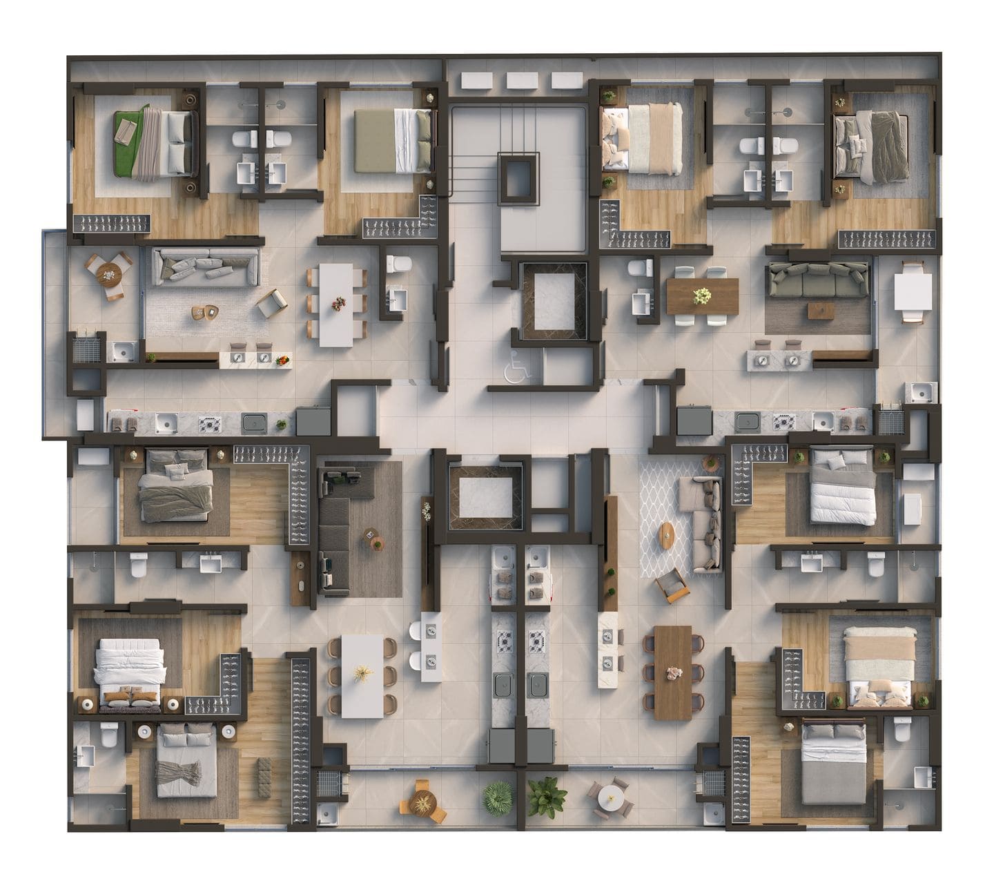 O projeto arquitetônico do residencial prioriza a iluminação natural e a ventilação, elementos que enriquecem a experiência residencial, além da distribuição inteligente dos espaços que assegura conforto e privacidade. O design moderno e funcional faz do Square um empreendimento único, refletindo o estilo de vida sofisticado e a exclusividade que Porto Belo oferece.