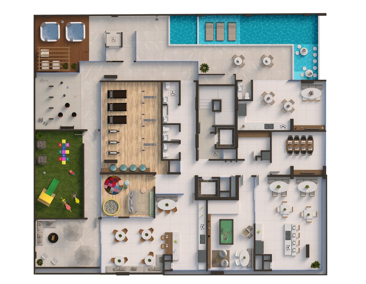 Aproveite a ampla sacada com churrasqueira e áreas integradas que valorizam a convivência. O lazer completo inclui piscinas, playground, sala de jogos e espaços gourmet, pensados para o seu bem-estar.