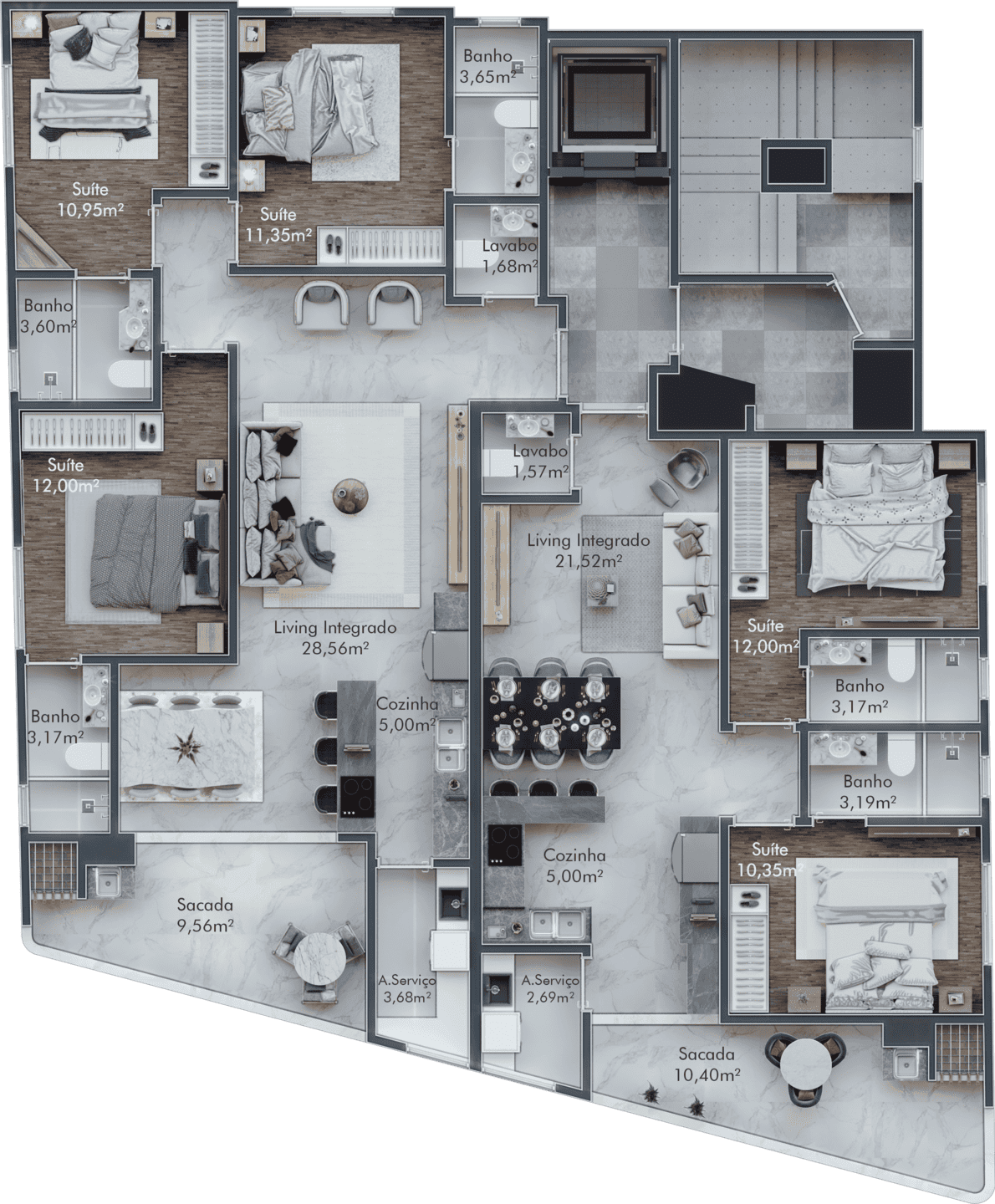 Sunset Beach apresenta duas opções de plantas com distribuição funcional e ambientes que priorizam o conforto e a sofisticação. Unidades com 82,45 m² e 109,45 m² oferecem entre 2 e 3 suítes, com living integrado e sacadas amplas para momentos de contemplação. A planta maior inclui área de serviço generosa e suíte master com banheiro espaçoso, ideal para quem busca um lar elegante à altura de Porto Belo – SC. O Sunset Beach traduz versatilidade, estilo e exclusividade em cada metro quadrado.
